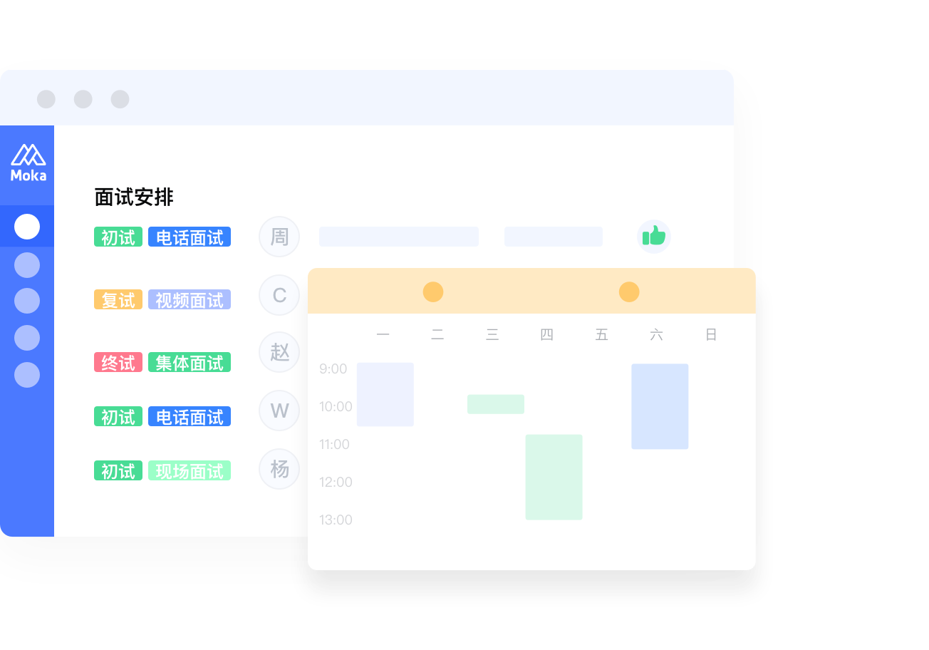 - 面试日历: 统筹多场次面试安排,HR、面试官、候选人之间高效协同;